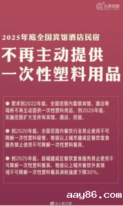 根据通知,到2020年底,全国范围内餐饮行业禁止使用不可降解一次性塑料吸管,地级以上城市建成区餐饮堂食服务禁止使用不可降解一次性塑料餐具;到2025年底,县城建成区餐饮堂食服务禁止使用不可降解一次性塑料餐具,地级以上城市餐饮外卖领域不可降解一次性塑料餐具消耗强度下降30%。